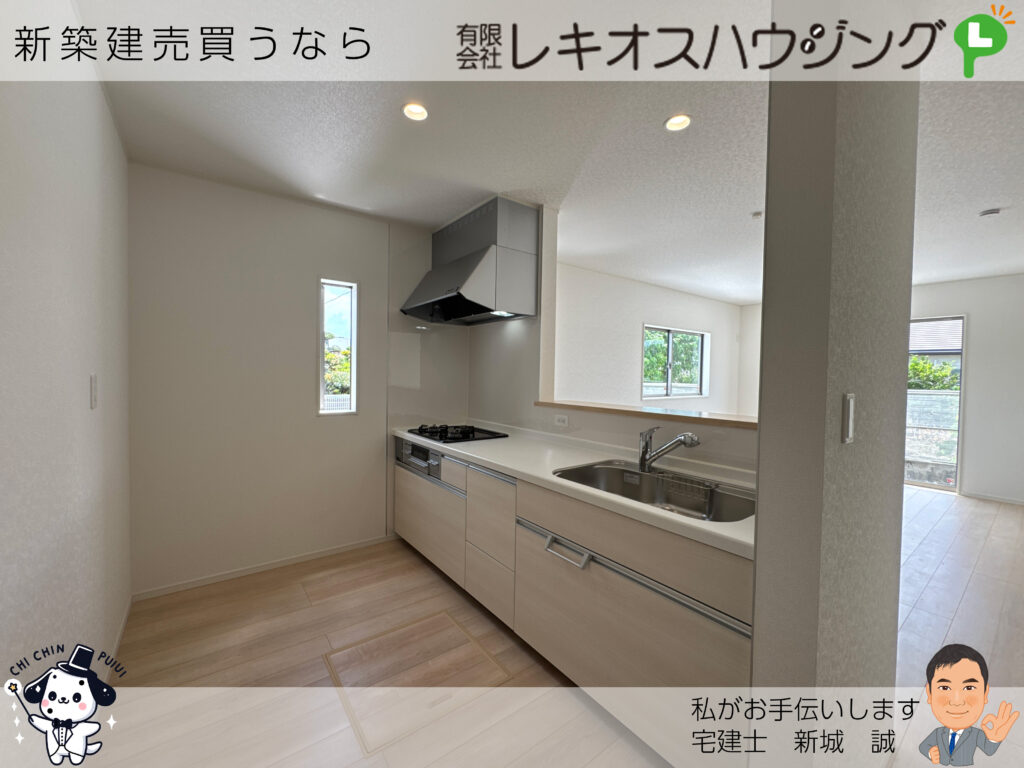 | 設備 | システムキッチン / カウンターキッチン / 浄水器 / プロパンガス / 浴室乾燥機 / 洗髪洗面化粧台 / 温水洗浄便座 / トイレ2カ所 / 床下収納 / 地上デジタル放送 / モニター付きインターホン / 上水 / 下水 | ||